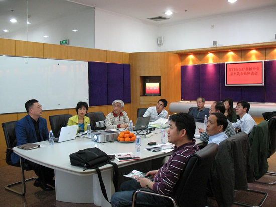 厦门市医疗器械协会第八次会长会议,于2012年3月30日在麦克奥迪实业集团有限公司举行。会议由秘书长龙海厦主持,会议共有以下四个议程:1、由麦克奥迪公司领导介绍公司概况;2、会长王博亮汇报2012年协会工作计划及各副会长单位座谈,具体议题为:⑴、台资座谈会;⑵、台北参展海西两岸论谈;⑶、招聘人员;⑷、协会变更地址;3、局领导讲话;4、参观麦克奥迪公司。