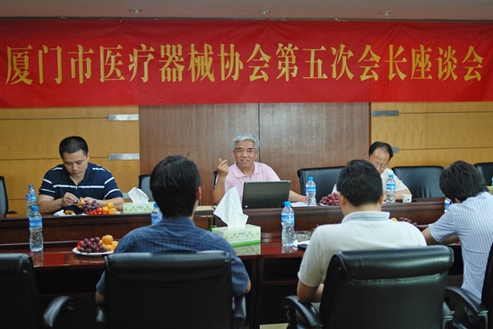 厦门市医疗器械协会第五次会长会议,于2011年5月30日在国药控股福建有限公司举行。会议由王博亮会长主持。这次会议共有以下三个议程:1、参观国药控股福建有限公司;2、协会近期主要工作情况通报;3、会长单位相关产品介绍。
