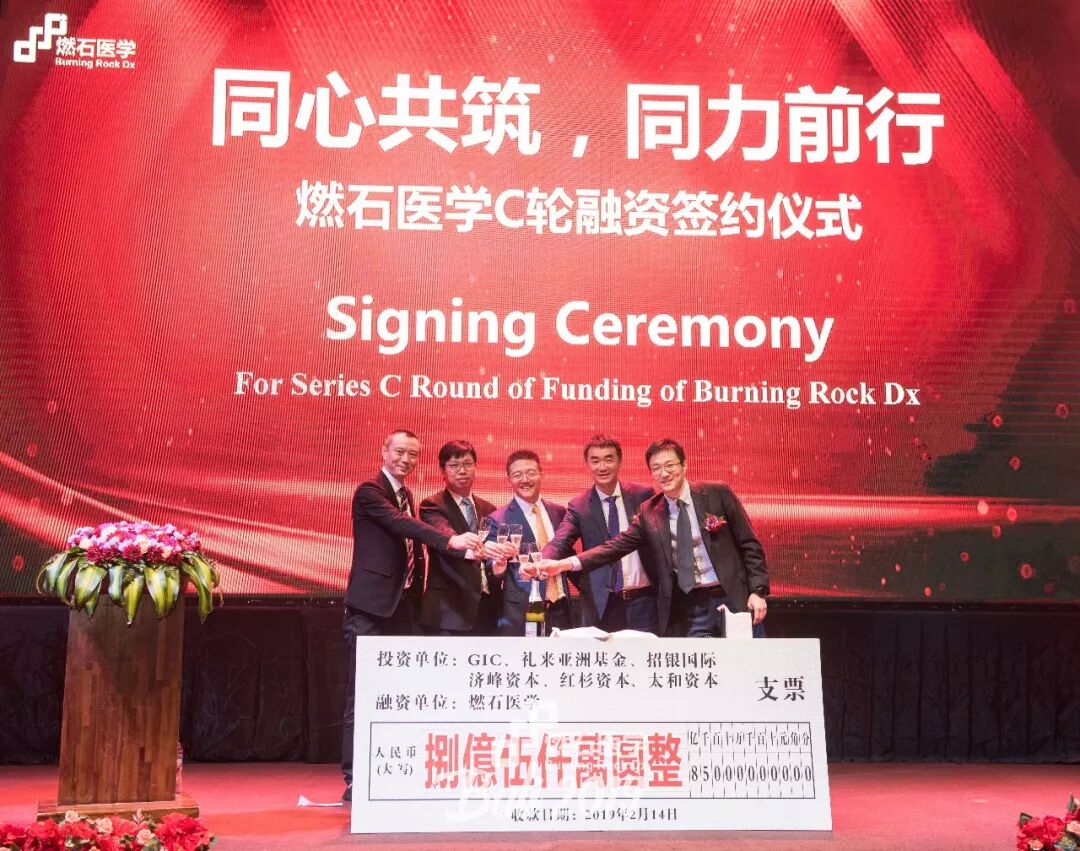 2019年2月14日,燃石医学举办C轮融资签约仪式,正式宣布获得总额为8.5亿人民币的C轮融资,本次融资由GIC(新加坡政府投资公司)领投,济峰资本、招银国际、礼来亚洲基金、红杉资本中国基金、太和资本跟投,是燃石医学继2016年B轮融资3亿人民币(红杉资本、济峰资本、招银国际和联想之星)后的又一轮大额融资。