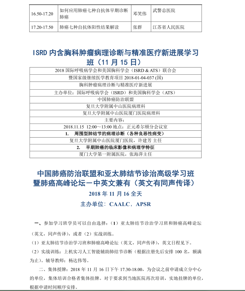 注册先后安排,额满为止);(4)考核后地市级医院挂牌“中国肺癌防治联盟肺结节诊