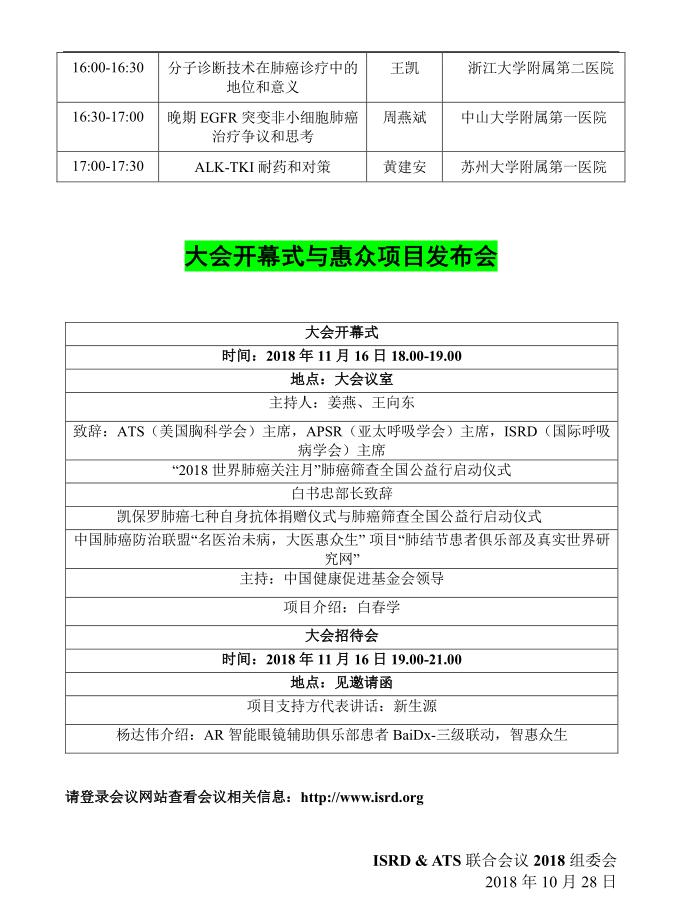 呼吸病学会和美国胸科学会联合会”(ISRD&ATS)将于 2018 年 11 月 15-18 日在厦