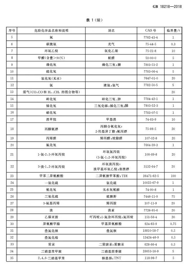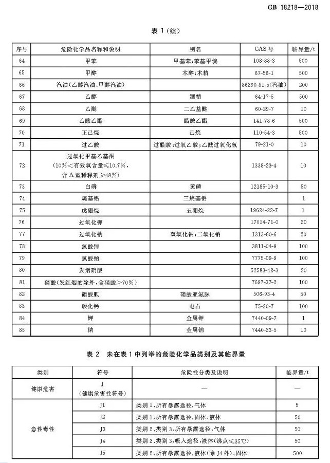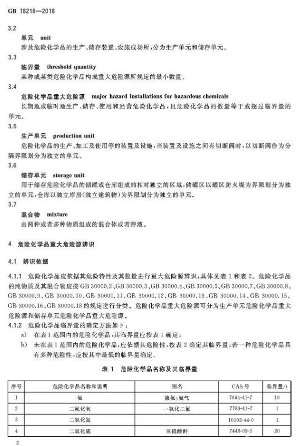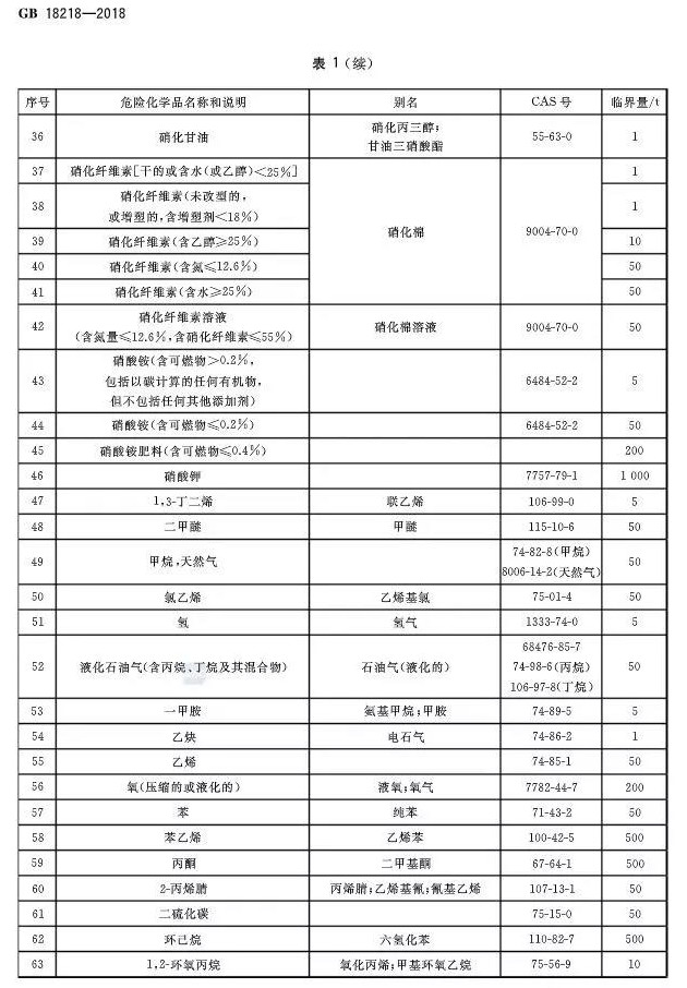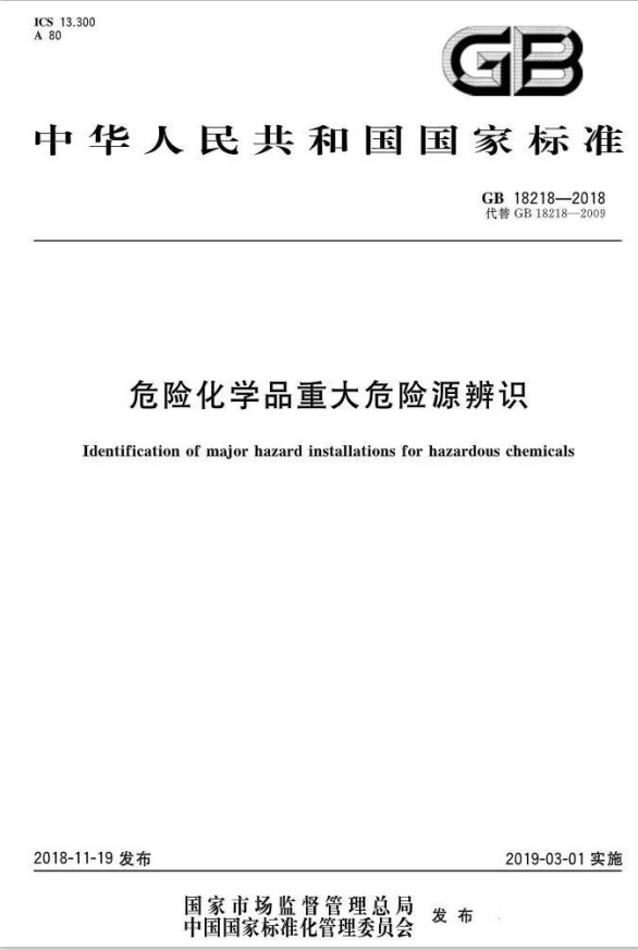 2018年11月19日,市场监管总局 标准委发布2018年第15号公告,批准发布了《危险化学品重大危险源辨识》GB 18218-2018、《危险化学品生产装置和储存设施风险基准》GB 36894-2018等国家标准。《危险化学品重大危险源辨识》 GB 18218-2018,代替标准GB18218-2009,该标准将于2019年03月01日起实施。