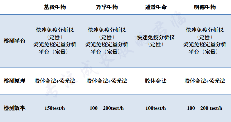 万孚生物、明德生物和基蛋生物这三家企业,目前在心标检测仪器领域并驾齐驱,产品线中都包含了定性分析仪器和定量分析平台。