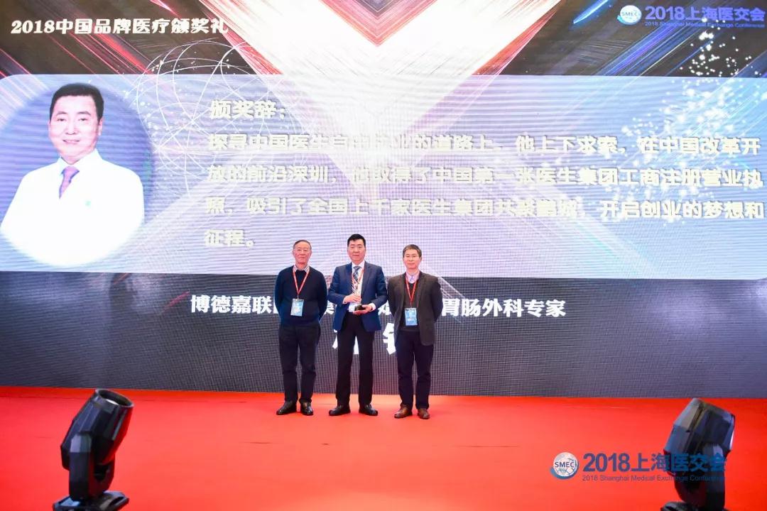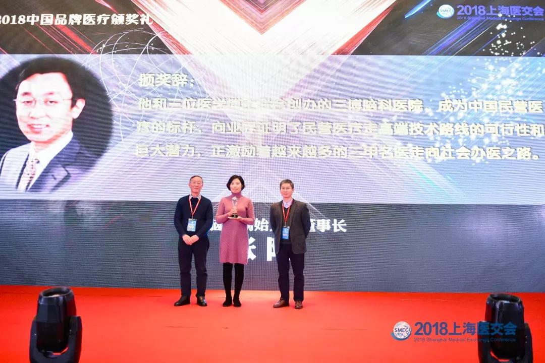 (冬雷脑科医生集团联合创始人董法廷代领,原上海二医大副校长陈志兴教授、上海市卫健委规划发展处徐崇勇处长颁奖)