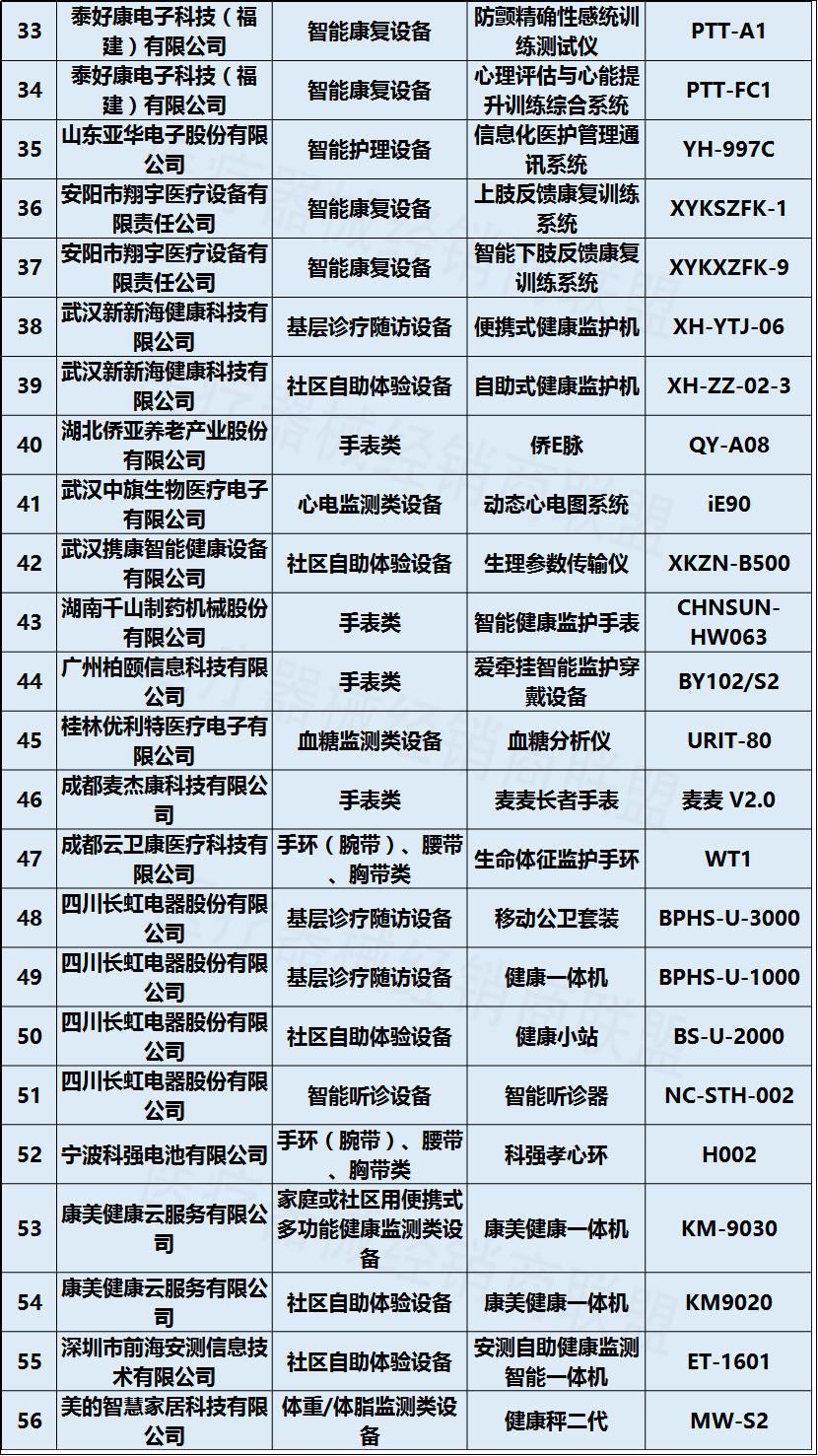 涉及33家企业共56款智能健康养老产品,以及57家企业的59项智慧健康养老服务。