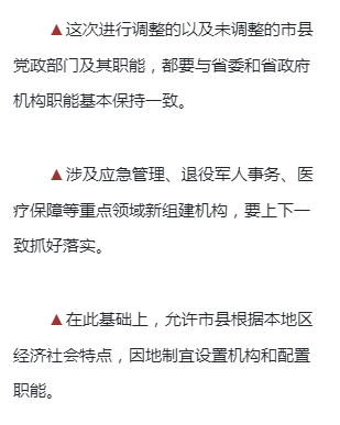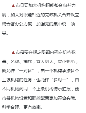 ▲县级党政机构区分县的不同情况,根据人口规模、财政收入、区域面积、经济总量等因素综合确定,大县不超过37个,中县不超过35个。