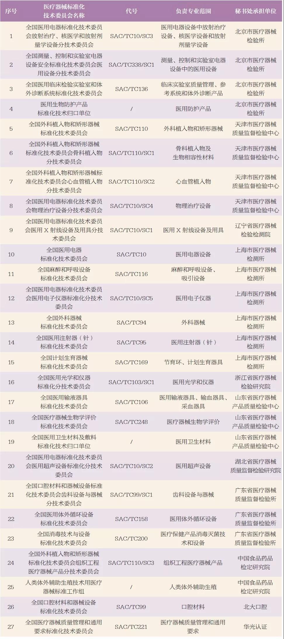 表1 医疗器械标准化技术委员会基本信息分布表
