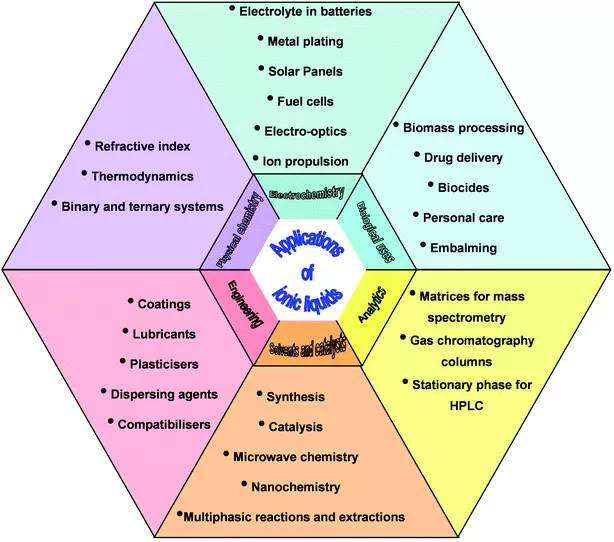突破性:具有高热稳定性、宽液态温度范围、可调酸碱性、极性、配位能力等。