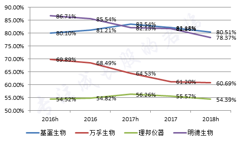 此外,基蛋生物还要独特些,是行业内毛利率下降最慢的一家。