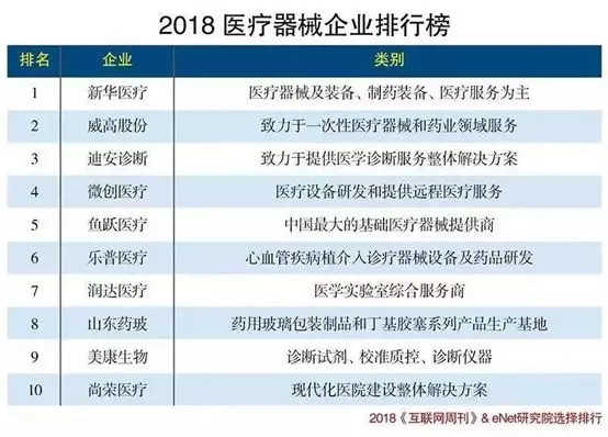 2018最新中国医疗器械企业排行榜出炉,新华医疗、威高、迪安、微创、鱼跃、乐普等入选TOP10榜单。