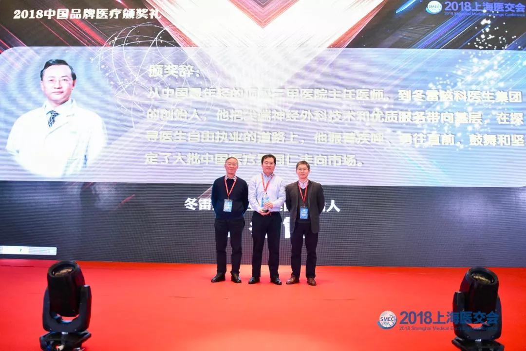 (冬雷脑科医生集团联合创始人董法廷代领,原上海二医大副校长陈志兴教授、上海市卫健委规划发展处徐崇勇处长颁奖)